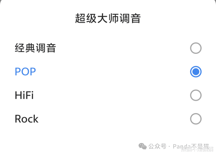 在最新固件版本中,弱水提供了四种调音风格:经典调音、POP、HIFI和Rock。每种风格的音频曲线各具特色。默认的HIFI模式整体声音最为均衡,动态响应精准,是最贴近声音原貌的调音风格,干预控制得恰到好处。