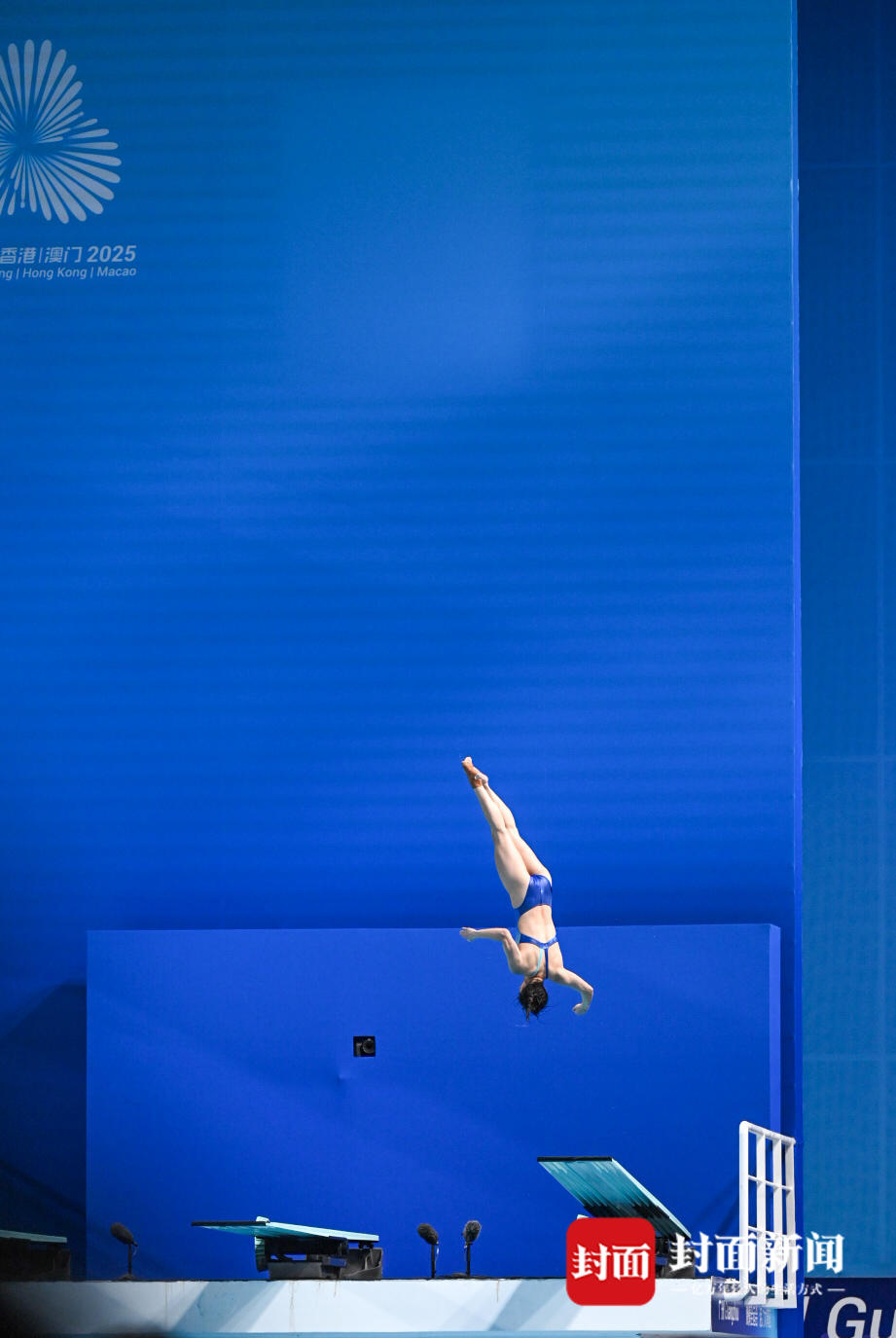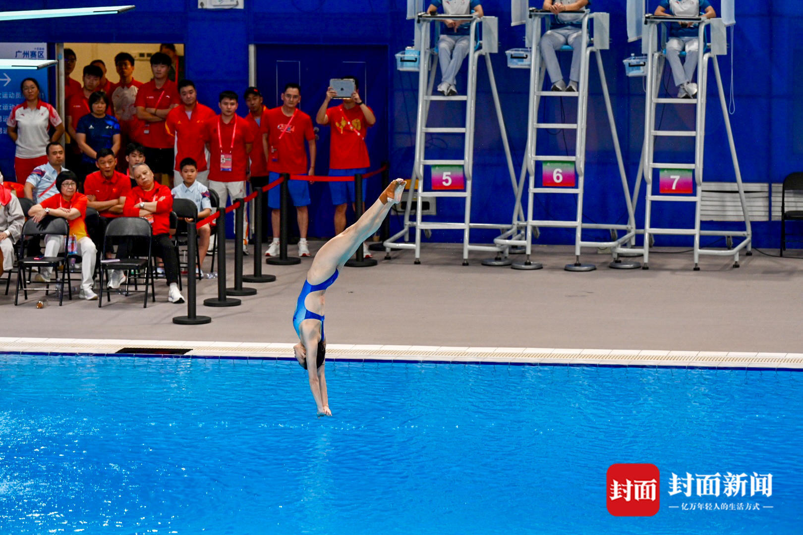 11月11日,广东省奥体中心游泳跳水馆座无虚席,在观众如雷的欢呼声中,广东队的林珊在女子3米跳板决赛第四轮和第五轮都拿到了80以上高分,逆转夺冠。四川选手陈佳以总分6.05的分差获得了一枚宝贵的银牌,这是她在本届全运会上获得第三枚奖牌,两银一铜是陈佳交出的成绩单,“全运会我给自己打7分,一米板扣两分、三米板扣一分”。